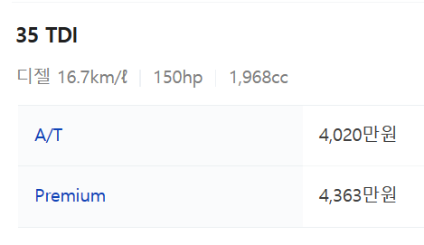 - 아우디 Q2는 A/T와 Premium으로 나눌 수 있습니다. 각각의 등급별 트림의 가격은 아래와 같습니다.