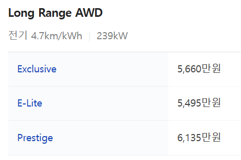 - 아이오닉 5는 Standard / Standard AWD / Long Range / Long Range AWD로 나눌 수 있습니다. 자세한 가격은 아래와 같습니다.
