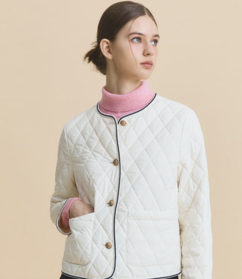 - 제가 가지고 온 제품은 따끈따끈한 몽클레르의 신상인데요. 퀼팅 디자인과 여성스러운 핏이 너무나 이쁜 경량 패딩입니다. 사진에서 보시는 것과 같이 몸에 착 붙어 라인을 살려주는 디자인으로 슬림하지만 불편하지 않고 너무나 편안한 경량 패딩인데요. 몽클레르의 기술력에 대해서는 따로 언급할 필요가 없을 정도로 독보적인 기술력을 지니고 있고, 그만큼 이 제품도 경량 패딩인데도 불구하고 보온성이나 기능성이 상당히 좋은 패딩입니다. 입었을 때 라인을 잘 살려준다는 점, 주머니가 깊어서 편리하다는 점, 가볍지만 매우 따뜻하다는 점, 퀼팅 패턴으로 여성스럽고 우아한 느낌을 준다는 점 등이 쿠어리스의 가장 큰 장점이라고 할 수 있습니다. 믿고 구매할 수 있는 몽클레르 쿠어리스 입니다.