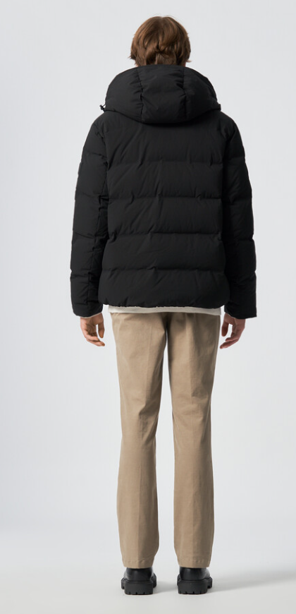 - 이름에서 알 수 있듯이 라이트 웨이트로 매우 가벼운 재킷이라 부담 없이 언제든지 걸칠 수 있는 점퍼고요. 구스다운 재질과 하이넥 형태의 디자인으로 보온성도 좋은 패딩재킷입니다. 사진상에서 보시는 것처럼 일반 면바지에도 너무 잘 어울리고 청바지에도 잘 어울리는 등 다양한 하의와 함께 스타일링할 수 있는 구스다운 재킷입니다.