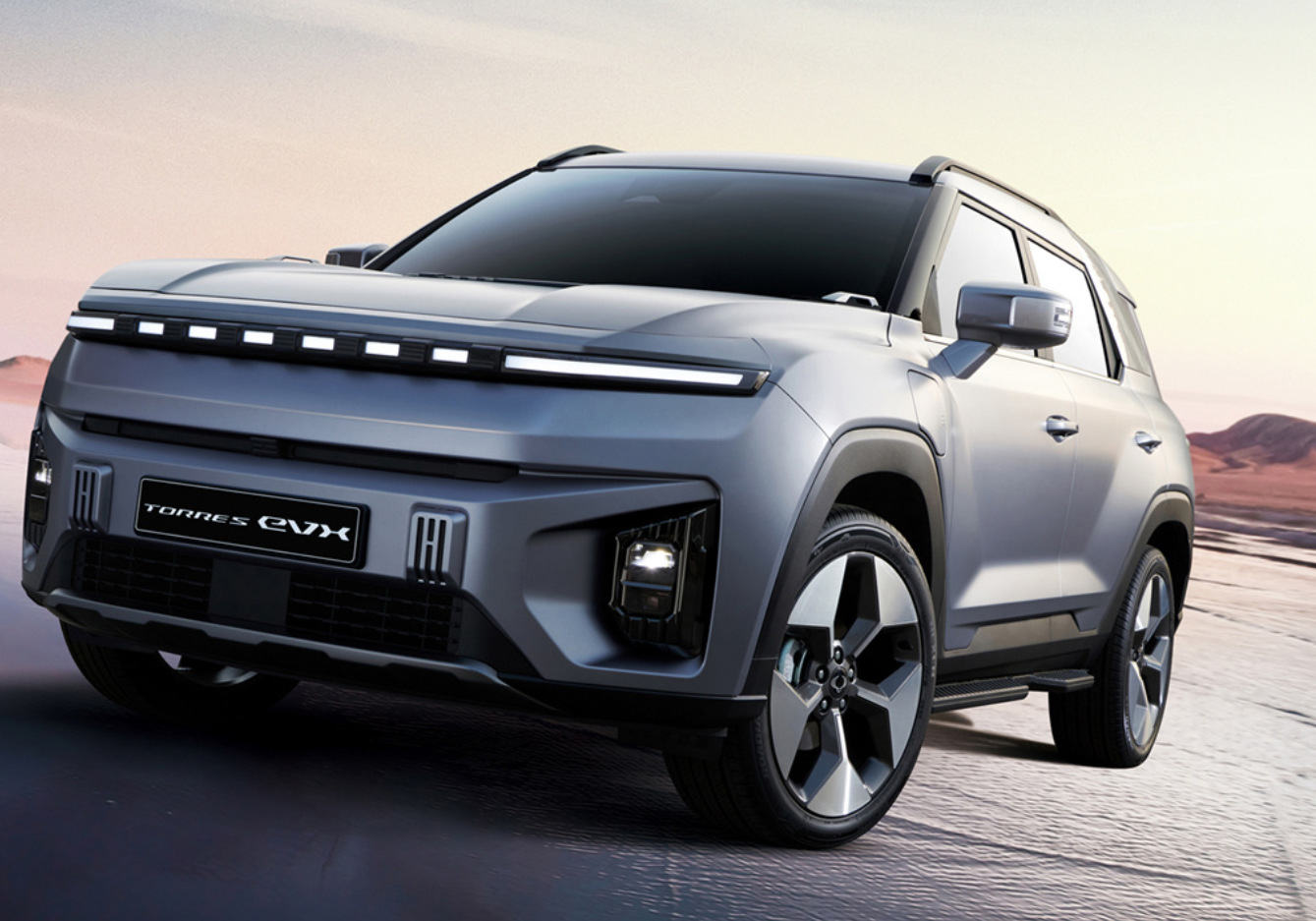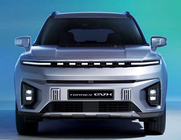 - 토레스 EVX의 디자인은 정통 SUV의 오리지널리티를 강조하면서도 최첨단 느낌이 드는 아이덴티티를 강조합니다. 전면부를 가로지르는 수평형의 도트 스타일의 면발광 LED 주간 주행 등(DRL)이 토레스 EVX의 독보적인 존재감을 표현하면서 심플해 보이지만 에지 있는 모습을 보여줍니다.