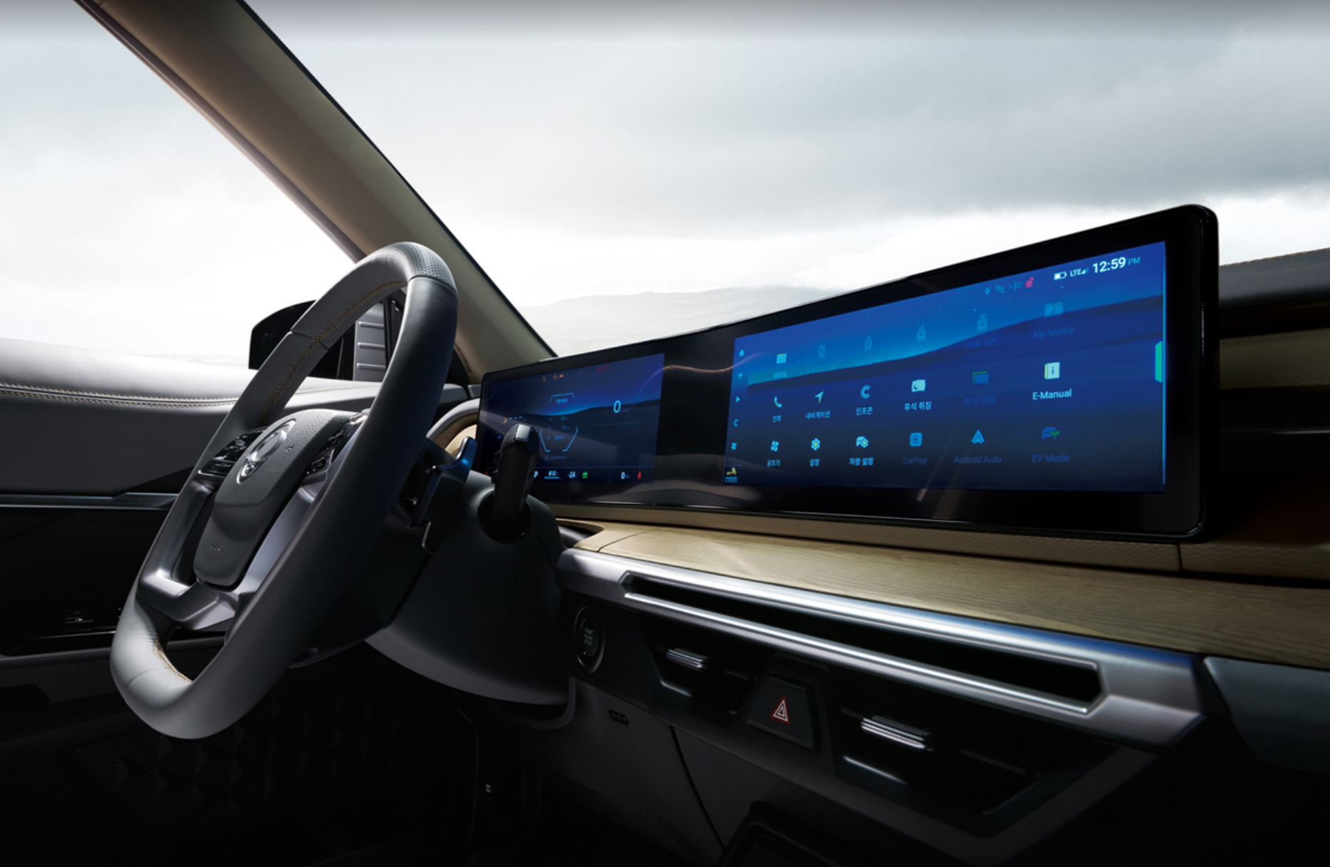 - 기존의 토레스는 파격적인 터치리스 스크린을 선보였다면, 이번 토레스 EVX는 디지털 클러스터와 내비게이션을 연결한 전면의 파노라마형 디스플레이를 장착했습니다. 따라서 다양한 정보를 한눈에 파악할 수 있어 운전자의 시인성과 편리성을 높였습니다.
