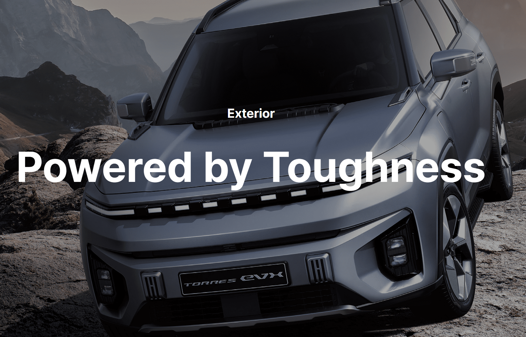 - 토레스 EVX에도 역시나 KG 모빌리티의 디자인 철학인 'Powered by toughness'가 적용되어 강렬한 첫인상과 미래지향적인 전동화 모델 스타일로 디자인 되었습니다.