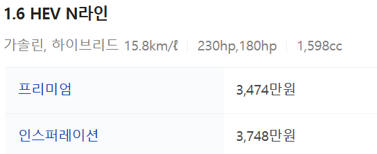 - 2023 투싼 N-Line 하이브리드는 프리미엄과 인스퍼레이션으로 나눌 수 있습니다. 각각의 등급별 트림에 가격은 아래와 같습니다.