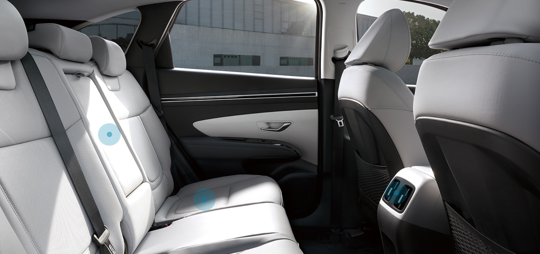 - 2열은 널찍한 공간으로 성인이 타도 불편함을 느낄 수 없을 정도로 공간이 있어 패밀리카로 손색없습니다. 2023 투싼 N-Line 하이브리드는 이전 모델(3세대)과 비교하여 전장이나 휠베이스 등이 늘어났고 한 체급 위인 싼타페와 비교하더라도 큰 차이가 나지 않을 정도로 여유로운 공간을 자랑합니다.
