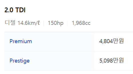 - 2023 폭스바겐 티구안 올스페이스는 상기에서 말씀드린대로 가솔린인지 디젤인지에 따라 등급별 트림이 다릅니다. 2.0 TDI는 디젤 라인업이고, 2.0 TSI는 가솔린 라인업입니다. 각각의 등급별 트림의 자세한 가격은 아래와 같습니다.