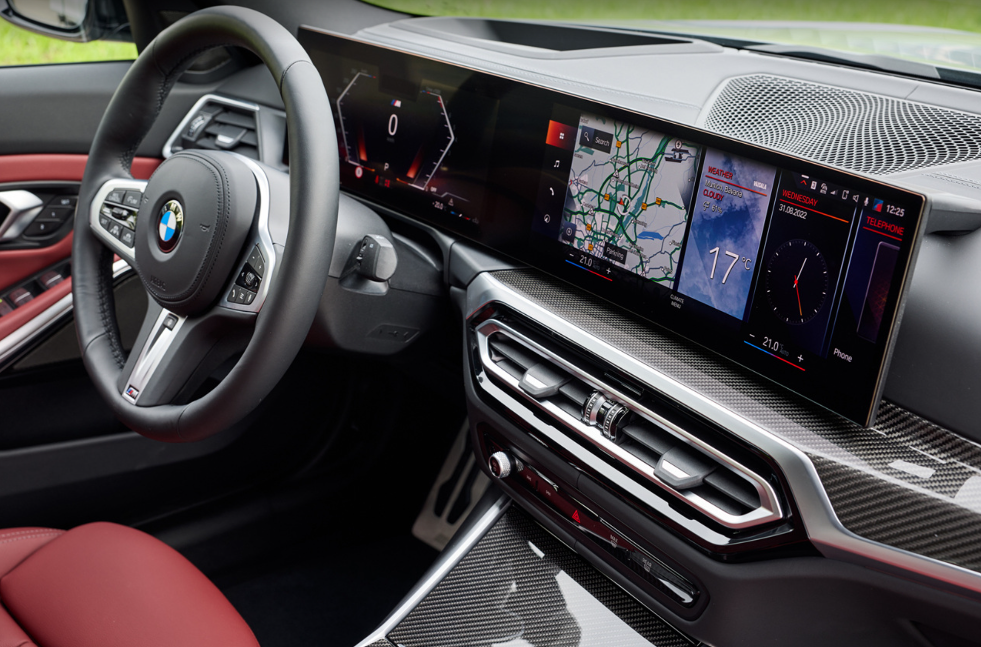 - M5 로고가 빛나는 붉은색의 M 멀티펑션 시트와 붉은색의 패들쉬프트가 돋보이는 M 레더 스티어링 휠 등은 BMW 3 시리즈만의 특유한 이미지를 만들어줍니다.