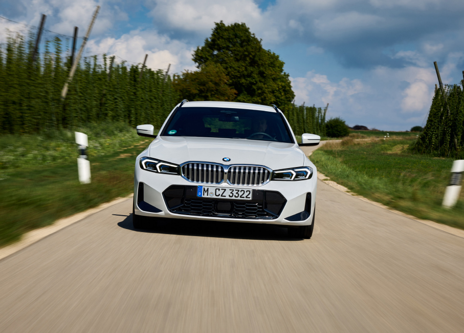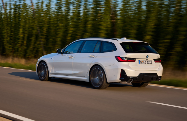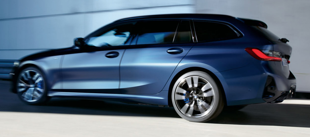 - 2023 BMW 3시리즈 투어링은 외관이 굉장히 역동적이면서 스포티합니다. 키드니 그릴이 굉장히 넓으면서도 헤드라이트와 완벽한 조화를 이루면서 스포티함이 강조됩니다. 휠 디자인은 주간 주행 등의 반전된 L자형을 돋보이게 하여 차량이 더 강하고 단단해 보이는 효과가 있습니다.