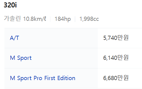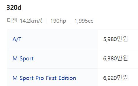 - 2023 BMW 3시리즈 투어링은 320i, 320d, M340i xDrive로 나눌 수 있습니다. 각각의 등급별 트림에 자세한 가격은 아래와 같습니다.