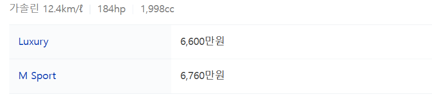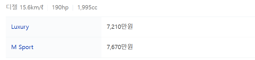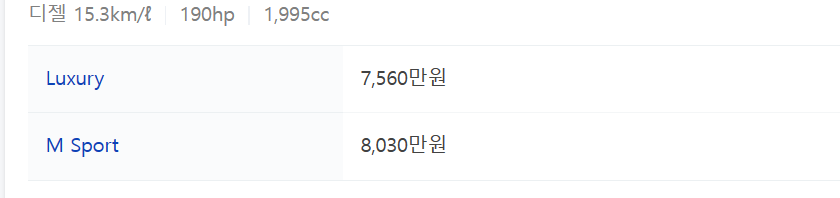 - 연료 : 가솔린, 디젤