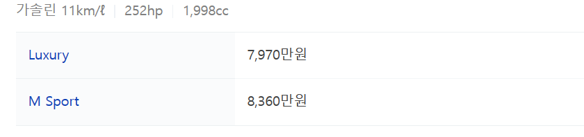 - BMW 5 시리즈의 등급별 트림에 따라 가격을 아래와 같이 정리해놓았습니다.