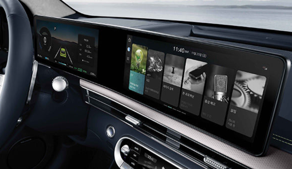 - 차세대 인포테인먼스 시스템(ccIC, connected car Integrated Cockpit)은 클러스터와 인포테인먼트 시스템이 파노라믹 디스플레이로 연결돼 하이테크한 이미지를 연출합니다.