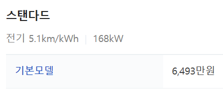 - 연비 : 복합 4.1 ~ 5.1km/kWh 도심 4.3 ~ 5.7, 고속 3.8 ~ 4.5