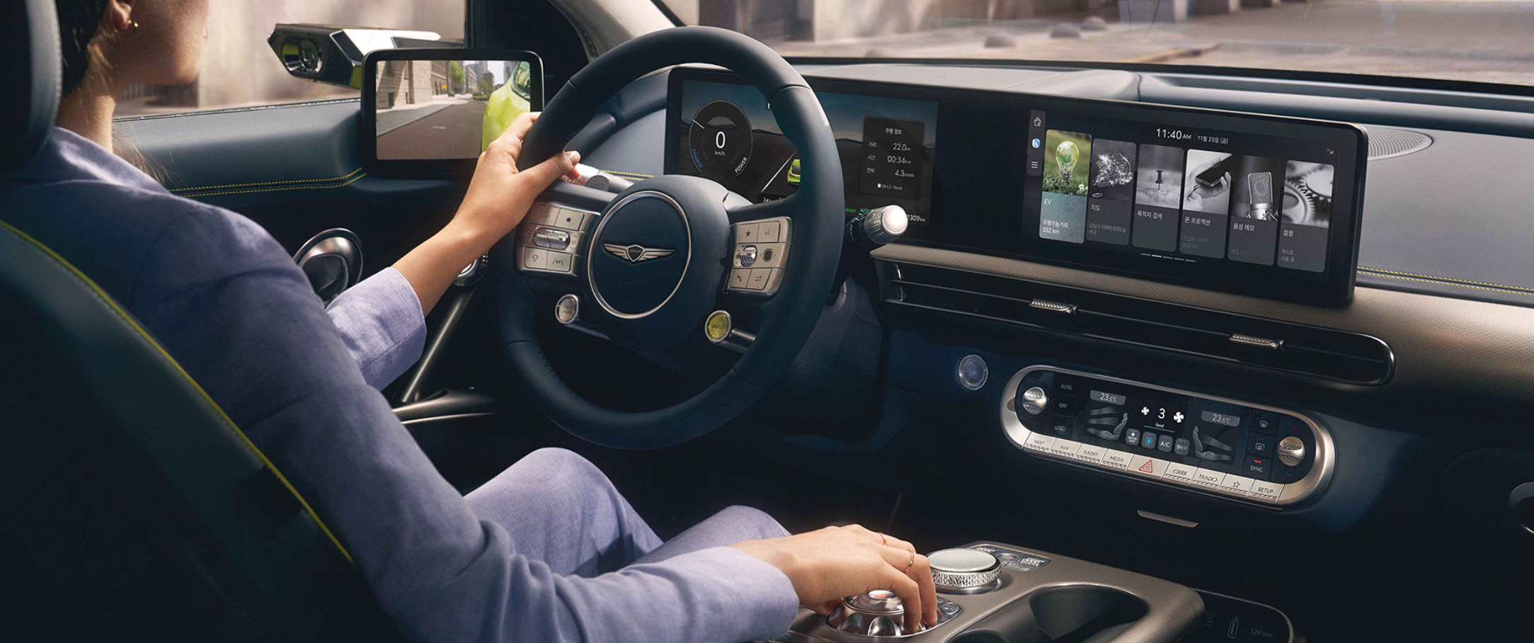 - 제네시스 최초로 후드와 펜더 부분을 하나의 패널로 구성한 클렘쉘 후드를 적용하여 전용 전기차다운 깔끔하고 단정한 이미지를 완성했습니다.