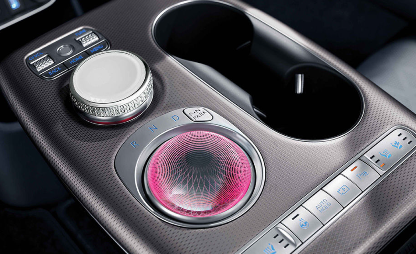 - GV60 실내 인테리어에서 가장 눈에 띄는 요소는 바로 크리스탈 스피어입니다. 크리스탈 스피어는 시동이 꺼져 있을 때는 위 그림과 같이 무드등이 들어와 크리스탈 오브제(objet)로 고객에게 심미적인 만족감을 선사하고 시동이 걸리면 구 모형이 회전하며 변속 조작계가 나타나 최첨단 미래 모빌리티의 실내 분위기를 느낄 수 있습니다. 크리스탈 스피어는 디자인 요소뿐만 아니라 직관적으로 운전 가능 상태를 알려주기 때문에 운전자와 감성적 교류의 중간 매개체 역할도 하고 있습니다.