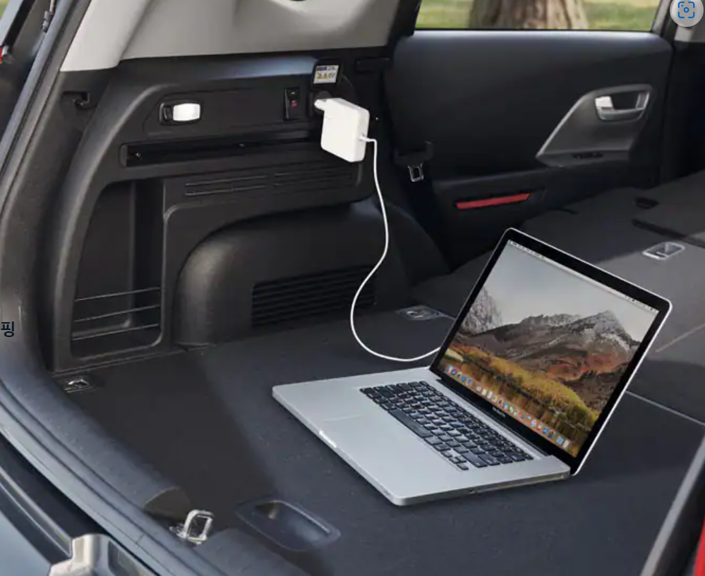 - 실내에는 V2L 콘센트가 설치되어 있습니다. 러기지 멀티 수납트림에 위치한 콘센트를 통해 220V 전원을 연결할 수 있고, 덕분에 다양한 전자기기를 편리하게 사용할 수 있습니다.