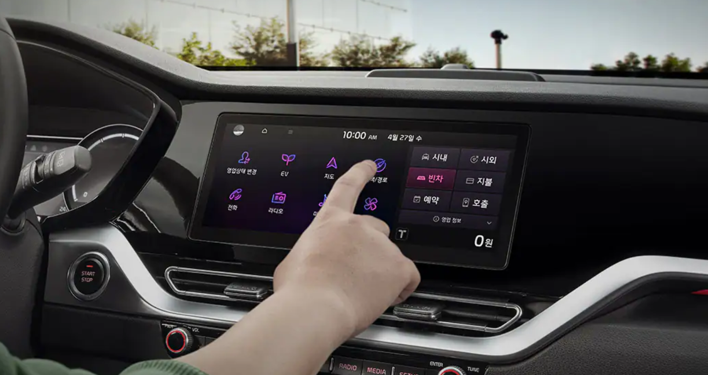 * 올인원 디스플레이는 Kia Genuine Accessories 품목이며 택시 모델 한정 적용 가능, 사양 적용 시 기아 커넥트 & 기아 페이 등 기본 내비게이션 부가 기능 일부 미적용