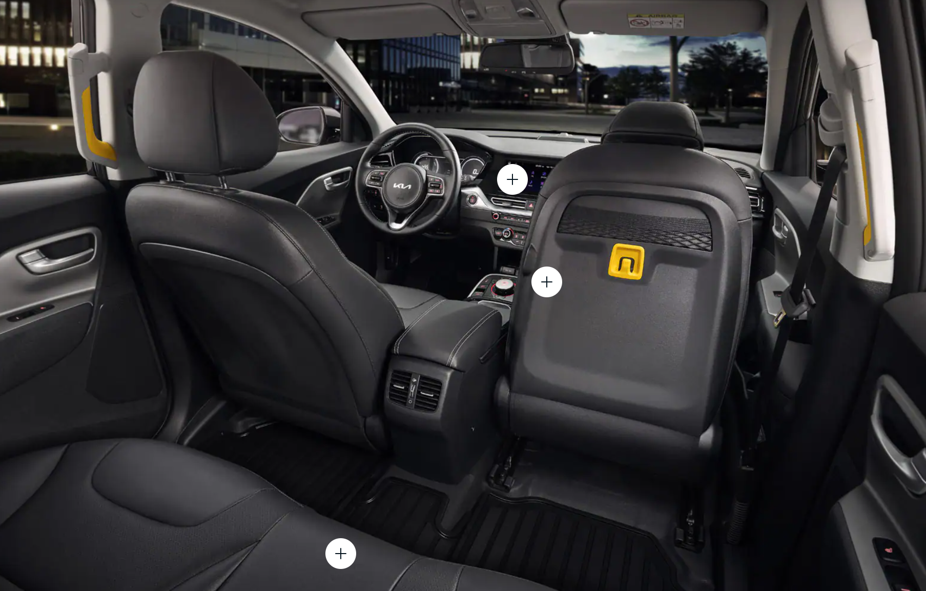 - 니로 플러스는 택시 탑승 시 동승석의 탑승 환경을 최대한 고려하여 워크인 디바이스, 슬림형 헤드레스트, C타입 USB 단자, 가방 걸이 등을 설계했습니다. 또한 2열 시트벨트에 버클 조명을 달았는데, LED 조명이 있어 야간에 승객이 탑승했을 때 벨트를 어두운 곳에서도 쉽게 맬 수 있습니다. 2열 도어에는 리플렉터가 있는데, 하차 시에 승객의 안전을 위해 2열 도어 암레스트에 리플렉터를 적용했습니다.
