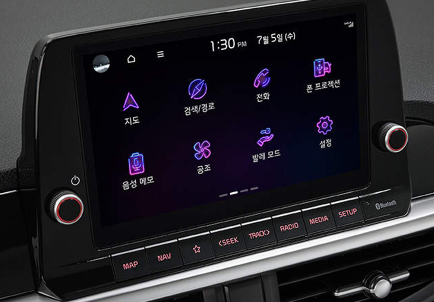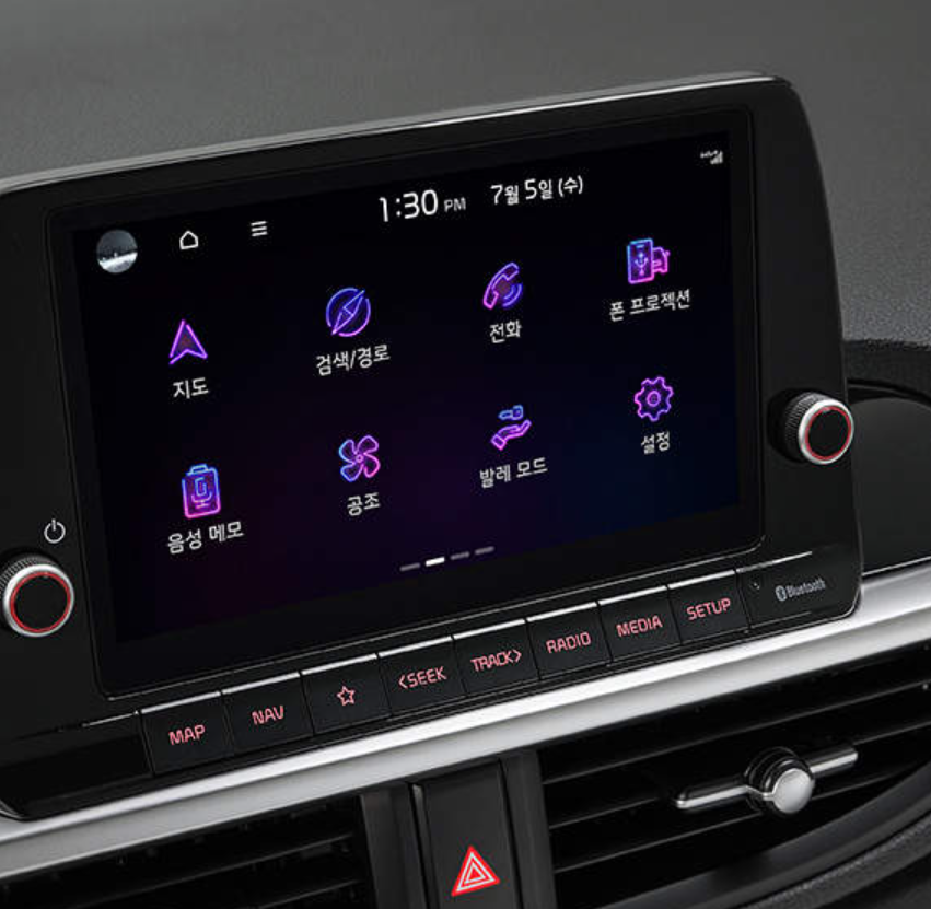 - 상기에서 언급드린 대로 8인치 내비게이션은 풀터치 방식으로 하이테크 한 감성을 더하면서 조작을 편리하게 해 줍니다. 음성 지원도 가능해 에어컨 등의 공조 기능을 음성을 통해 편하게 조작 가능하고요. Kia-Connect 원격 제어를 통해 공조 제어, 문 열림/문 닫힘, 차량 상태확인, 목적지 전송 등의 제어를 스마트폰을 이용하여 편리하게 할 수 있습니다. Kia Car Play도 가능하여 등록된 카드로 내비게이션 화면 터치를 통해 주유, 주차 요금 등을 결제할 수도 있습니다.