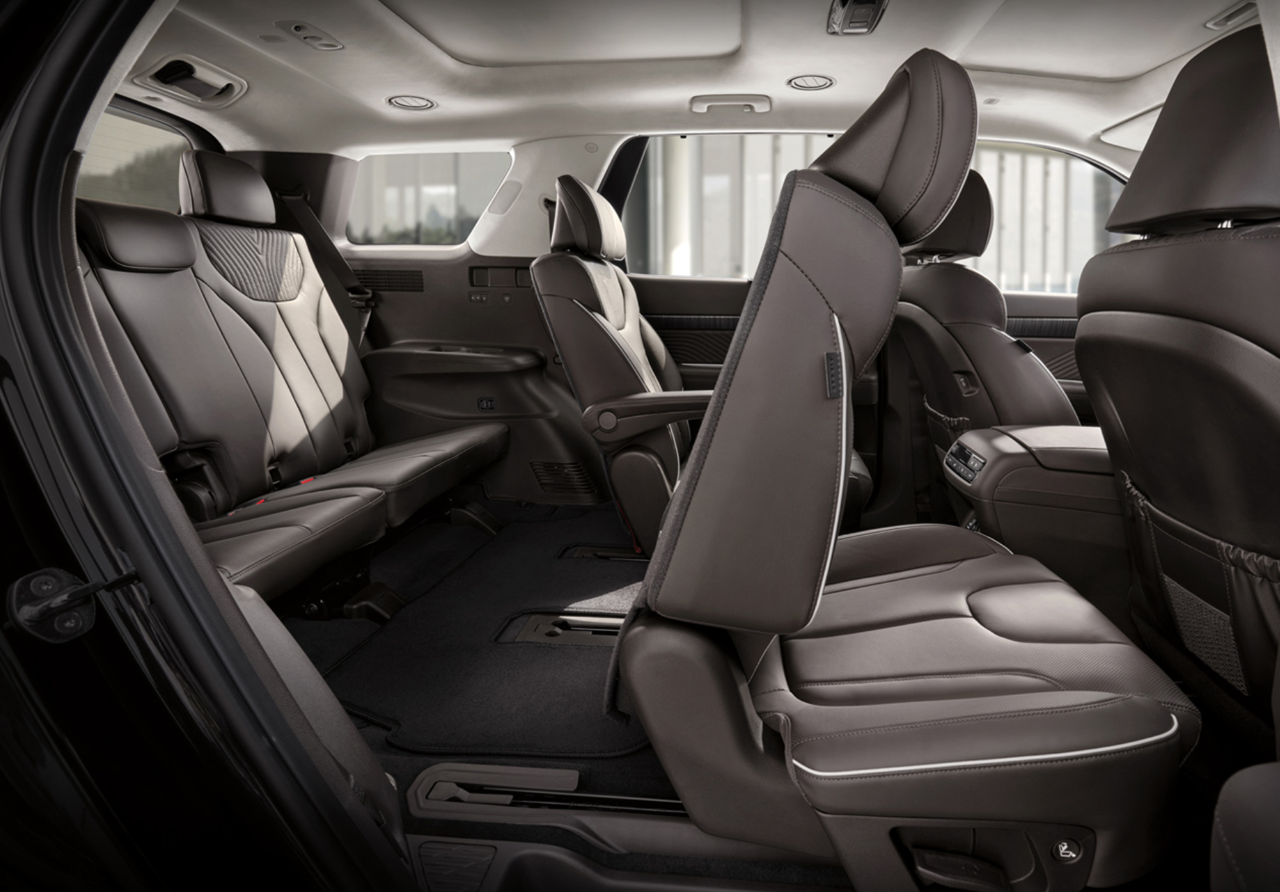 - 우선 펠리세이드는 7인승과 8인승이 모두 출시되어 대형 가족들도 넉넉하게 탈 수 있는 좌석을 보유하고 있습니다. 특히 좌석은 사진에서 보는 것과 같이 자유자재로 폴딩이 가능하기 때문에 가족 인원수에 맞게 조절하여 많은 짐이나 물건들을 적재할 수 있어 상당히 편리합니다.