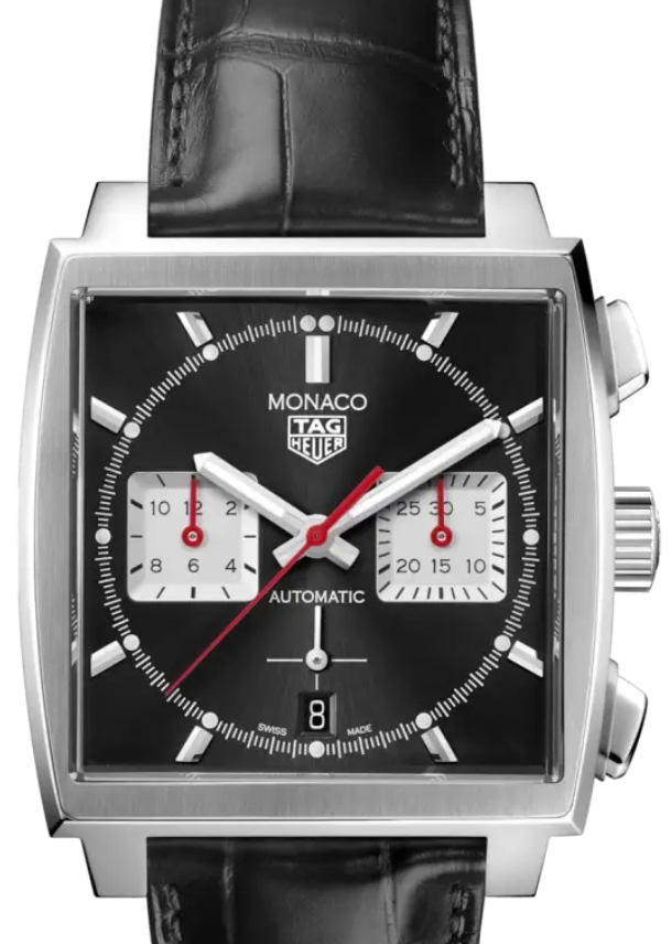- 다음으로 추천해 드릴 제품은 태그호이어 모나코 크로노입니다. 영화 르망에서 스티브 맥퀸이 착용한 것으로 유명한 시계로 태그호이어의 플래그쉽 모델입니다. 참고로 현재 나오고 있는 모나코는 과거 태그호이어가 호이어 시절에 만들었던 모나코의 복각판입니다. 오리지널 청판에 그레이 블랙 다이얼이 나오기도 하고 한정판 버전이 출시되기도 합니다.