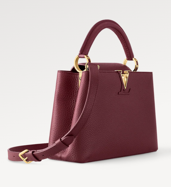 - 오늘 소개해 드릴 제품은 카퓌신인데요. 카퓌신은 루이비통을 대표하는 가방이자 루이비통에서 최고급 라인업 중 하나를 차지하고 있는 제품이기도 합니다. 카퓌신이라는 명칭은 루이비통의 첫 번째 매장이 위치한 카퓌신 거리에서 이름을 따왔다고 전해집니다. 카퓌신은 워낙 고급 라인업이다 보니 온라인에서는 구매가 불가능하고 오로지 오프라인에서만 구매가 가능합니다. 이 제품은 풀 그레인 토뤼옹 가죽 소재로 만들어졌기 때문에 부드러운 쉐입과 가죽의 유연한 질감을 입체적으로 느낄 수 있는 제품이고요. 루이비통만의 품격 있고 고급스러운 이미지를 느낄 수 있는 가방입니다.
