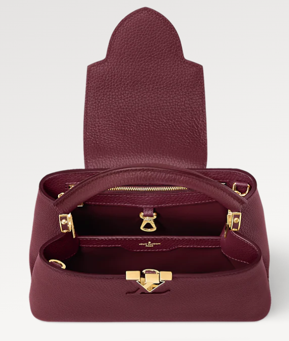 - 오늘 소개해 드릴 제품은 카퓌신인데요. 카퓌신은 루이비통을 대표하는 가방이자 루이비통에서 최고급 라인업 중 하나를 차지하고 있는 제품이기도 합니다. 카퓌신이라는 명칭은 루이비통의 첫 번째 매장이 위치한 카퓌신 거리에서 이름을 따왔다고 전해집니다. 카퓌신은 워낙 고급 라인업이다 보니 온라인에서는 구매가 불가능하고 오로지 오프라인에서만 구매가 가능합니다. 이 제품은 풀 그레인 토뤼옹 가죽 소재로 만들어졌기 때문에 부드러운 쉐입과 가죽의 유연한 질감을 입체적으로 느낄 수 있는 제품이고요. 루이비통만의 품격 있고 고급스러운 이미지를 느낄 수 있는 가방입니다.