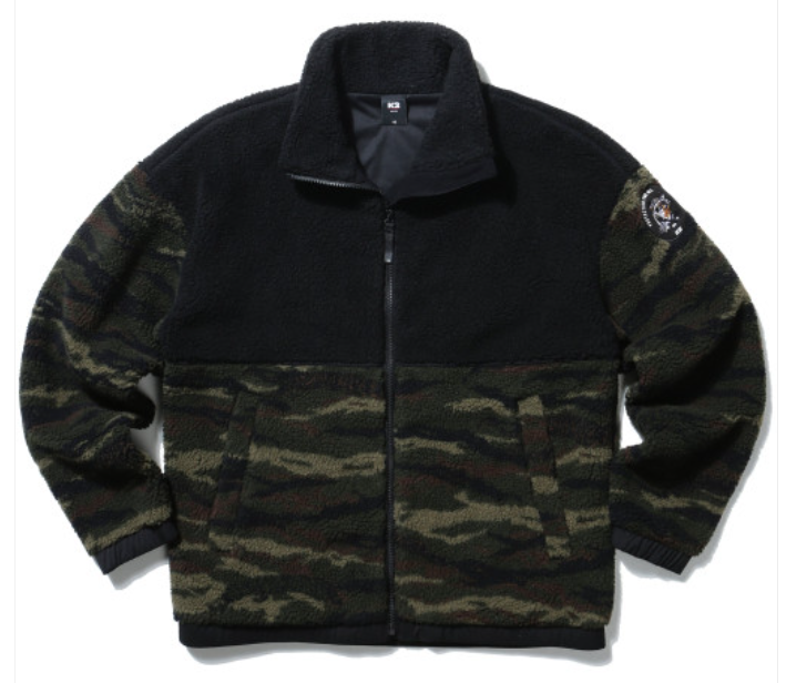 - 세 번째로 소개해 드릴 제품은 K2 타이거 플리스 재킷입니다. K2 타이거 플리스 재킷은 이름에 걸맞게 호랑이 무늬를 하고 있는 자켓인데요. 밀리터리룩 같지만 캐주얼한 느낌을 동시에 가지고 있는 자켓이라고 할 수 있습니다. 플리스 자켓에서 플리스는 상기에서 말씀 드린대로 보온이 따뜻하고 경량의 소재를 가지고 있는 것이 특징인데요. 타이거 플리스 자켓은 안쪽에 보온성 안감을 추가해서 완벽한 보온을 추구했습니다.
